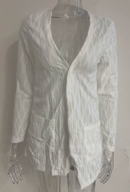 Hollow Solid Color Home Leisure Temperament Commuting Knitted Long-sleeved Cardigan Jacket Women's Clothing
