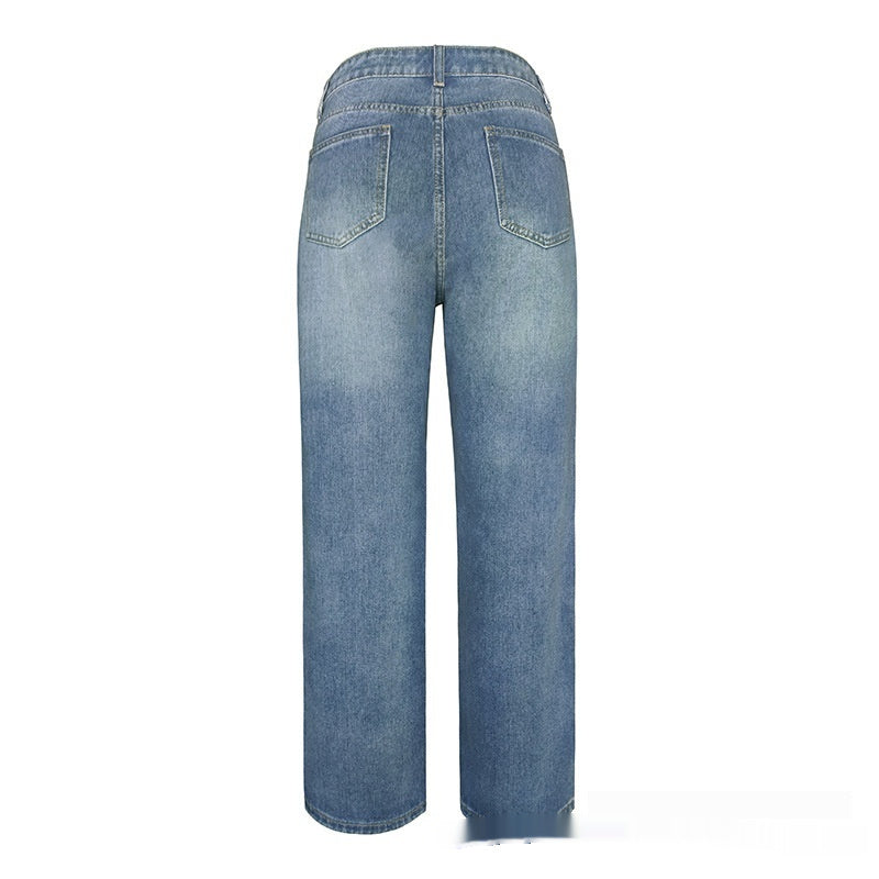 Loose Mid Waist Casual Straight Pants Cropped Pants